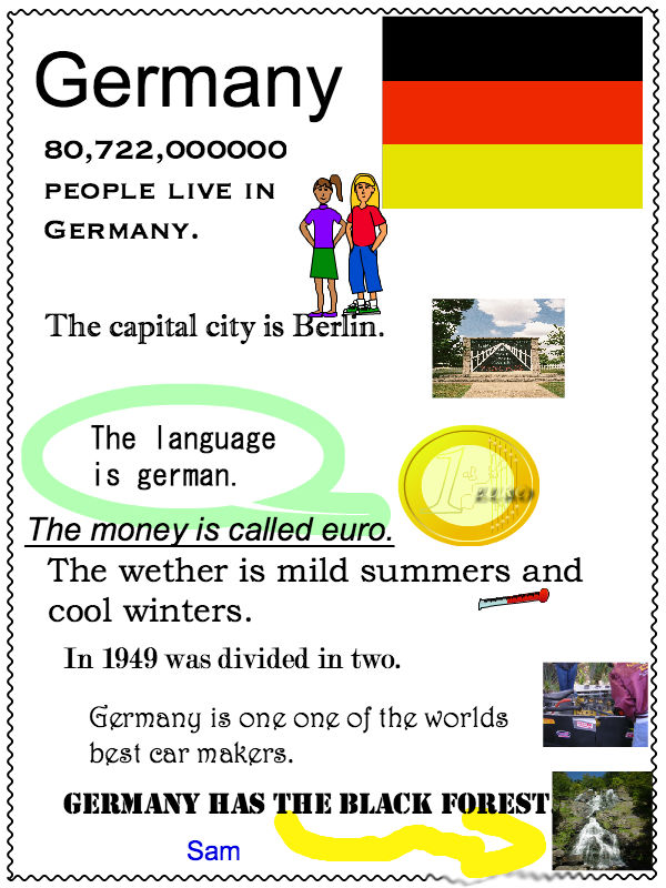 First, the students searched theWorldbook Online encyclopedia to gather some current quick facts about their country, including population, currency, language, climate, capital city, and some interesting facts of choice. They recorded the information on an organizer.