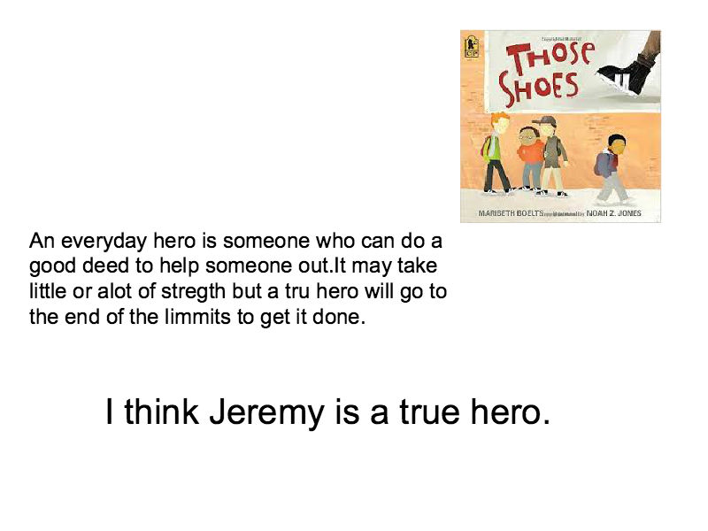 So we were fortunate to have the opportunity to meet via Skype with Maribeth Boelts to ask her questions about the experiences that inspired her ideas and about the writing process. “Are your stories based on experiences and people from your life, they wanted to know. Were you actually poor when you were young? Did you write the books to tell people that they should always get what they need and not what they want? How old were you when you wrote your very first books?” Was it your dream as a child to become an author? What is your writing process? What is your favorite book by another author? Are you still writing more books and what are they about? And more. Ms. Boelts was very generous with her time answering all our questions. Indeed, her stories are based on her experiences, validating what our students learn in class about writing: Write about what you know–or need to know.