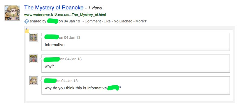 Would I use Subtext again? Yes! Using the app as a tool allowed students a different way of connecting with our text. Reading in groups is a social activity where students are learning with their peers. But using this digital tool elevated our small-group reading to a more inclusionary/participatory level by giving even those students who are usually not very vocal an equal voice. The lesson also demonstrates the power of liquid learning–most of the work was done outside of class. Also, the ability to build-in questions and to embed links facilitated active reading–although some students complained that the “the discussion questions…got in the way when there was a good part.” Most importantly, liquid resources like Subtext enable teachers to transcend the classroom and even school boundaries. Spending time together with a good book can include students across the room or literally across the world!